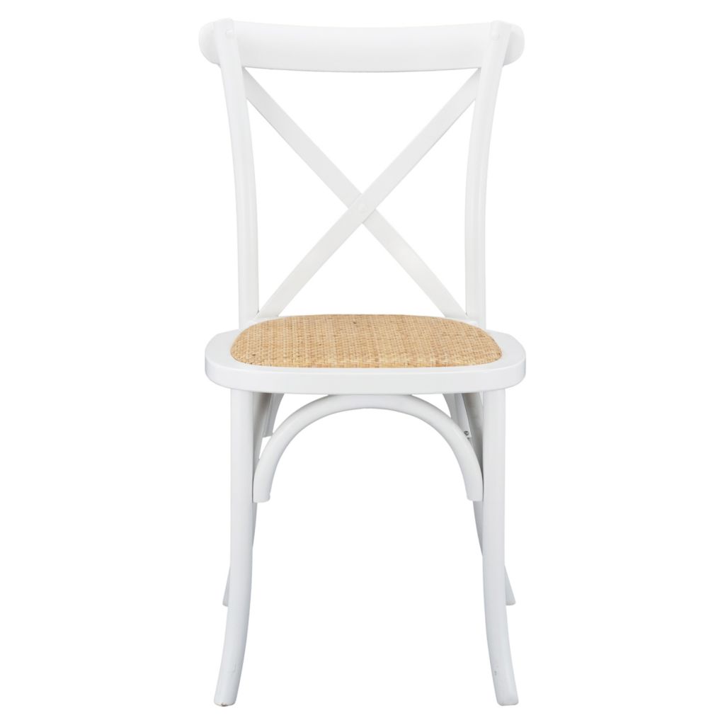 Η καρέκλα είναι κατασκευασμένη από υψηλής αντοχής ξύλο οξιάς σε λευκή απόχρωση, ενώ το κάθισμα της καρέκλας είναι από ψάθα με χειροποίητη πλέξη.
