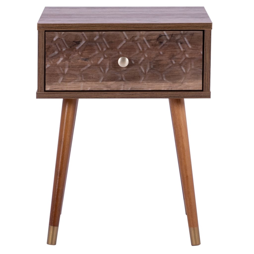 Βοηθητικό τραπεζάκι σαλονιού SHANICE κατασκευασμένοαπό μελαμίνη σε καρυδί απόχρωση, με ανάγλυφη υφή.