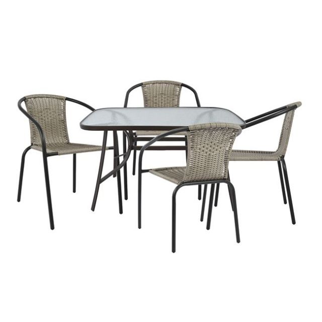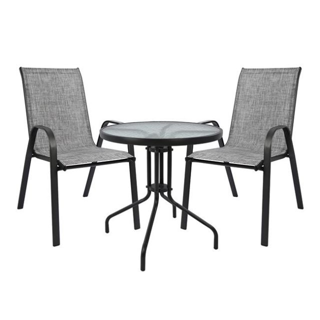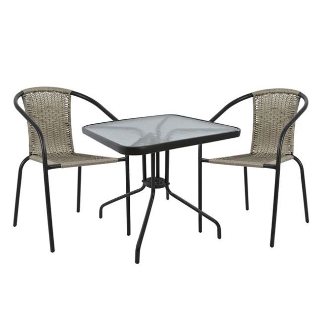 Σετ εξωτερικού χώρου με τετράγωνο τραπέζι με ΚΑΦΕ μεταλλικό σκελετό και γυάλινη θολή ΕΝΙΣΧΥΜΕΝΗ επιφάνεια και 2 μεταλλικές πτυσσόμενες καρέκλες με textilene, σε ΚΑΦΕ χρώμα.Ιδανικό σετ για μικρούς χώρους, όπως μπαλκόνια, φοιτητικά σπίτια κτλ.