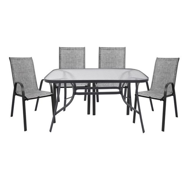 Η επένδυση στις καρέκλες είναι από textline (ή textilene) υψηλής ποιότητας 1x1. Αυτό είναι ένα παχύ, ισχυρό και ανθεκτικό πολυεστερικό ύφασμα. Σημαίνει ότι είναι κατασκευασμένο από πολυεστερικά νήματα με PVC.